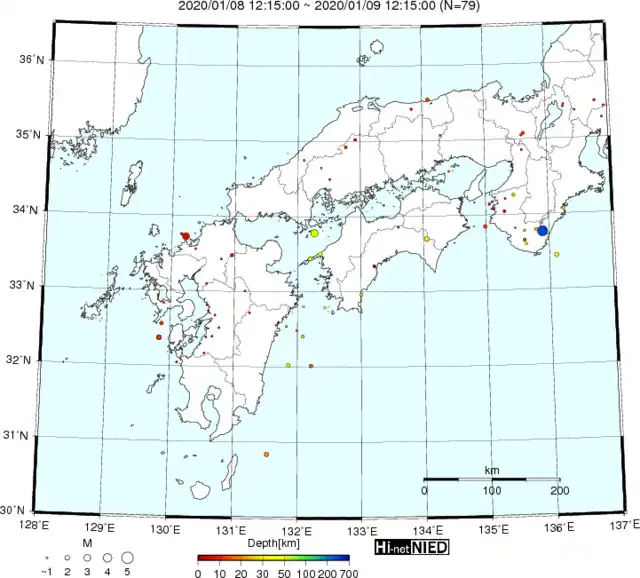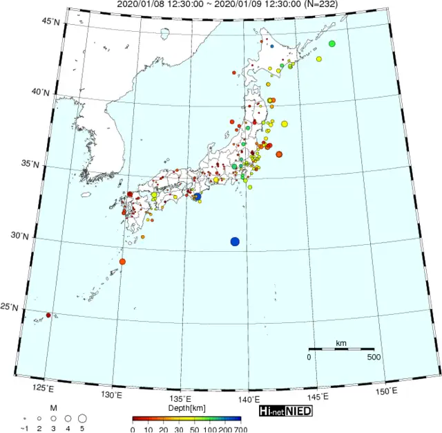 ●Hi-net日本地震分布(過去24時間)・・・小笠原のデータは掲載日がずれて反映されるようです(翌々日に掲載)