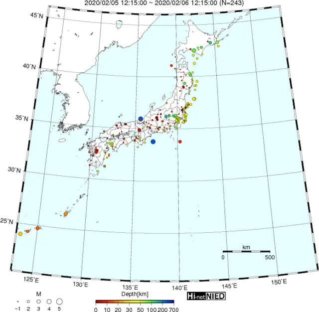 ●Hi-net日本地震分布(過去24時間)・・・小笠原のデータは掲載日がずれて反映されるようです(翌々日に掲載)