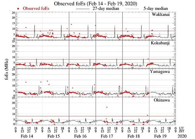 02/18 05時(UT)くらいに反応があった後、14時(UT)過ぎから強い反応が続いています