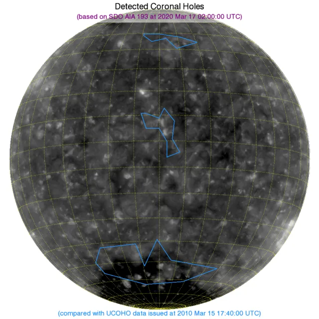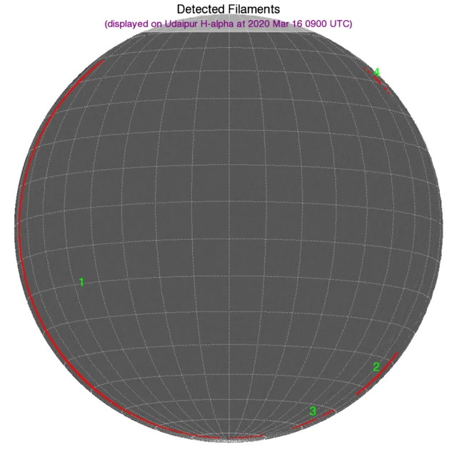 ※フィラメント:東端と南半球西端に広範囲なフィラメントがあります。北半球西端にも小さなフィラメントがあります