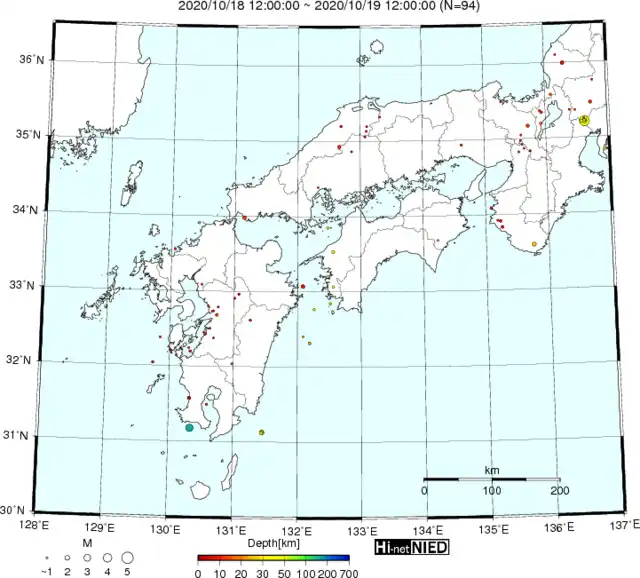 ●Hi-net日本地震分布(過去24時間)・・・小笠原のデータは掲載日がずれて反映されるようです(翌々日に掲載)