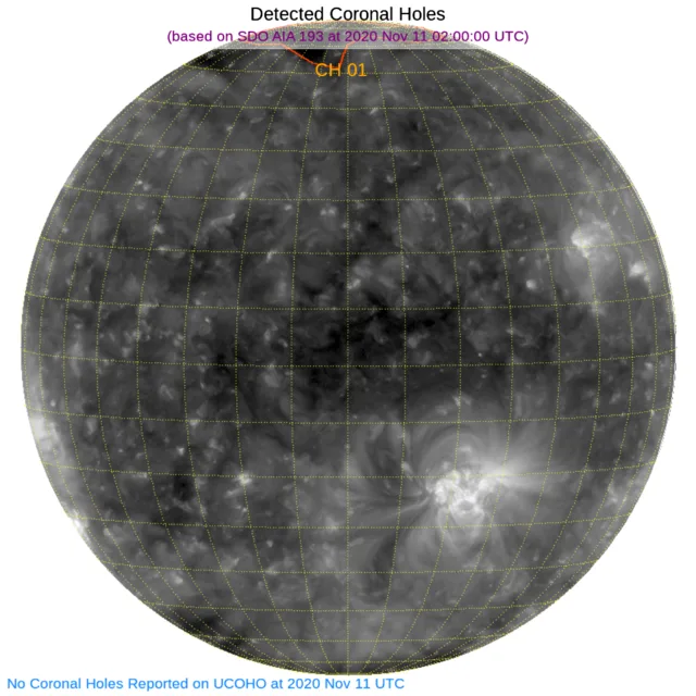 北の極に小さなコロナホールがあります
