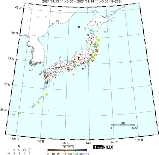 ●Hi-net日本地震分布(過去24時間)・・・小笠原のデータは掲載日がずれて反映されるようです(翌々日に掲載)