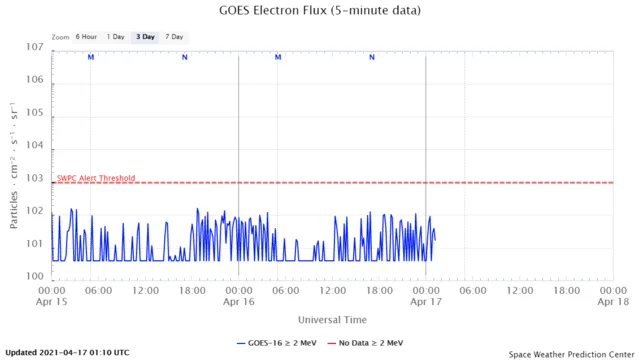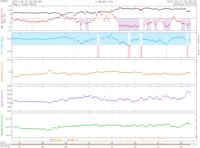 410km/s前後で推移していましたがここ数時間で上がり、現在530km/s前後で推移しています