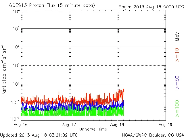 現在のところCME到着予測等は出されていませんが、Protonが上昇傾向にあります。続報あれば追記します。
