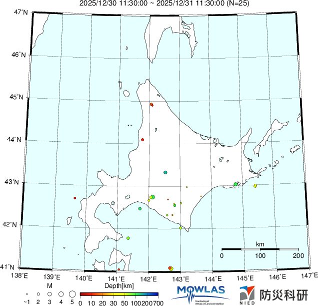 - 12/31 23時頃 ~ 01/02 10時頃(北半球西側で発生したM4.2)